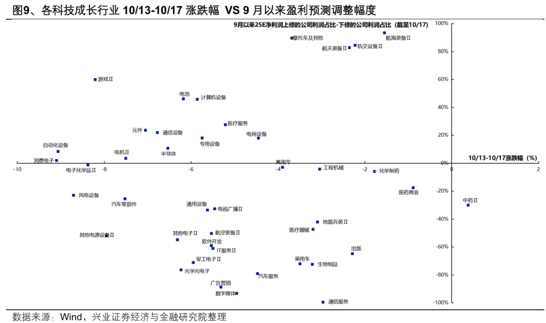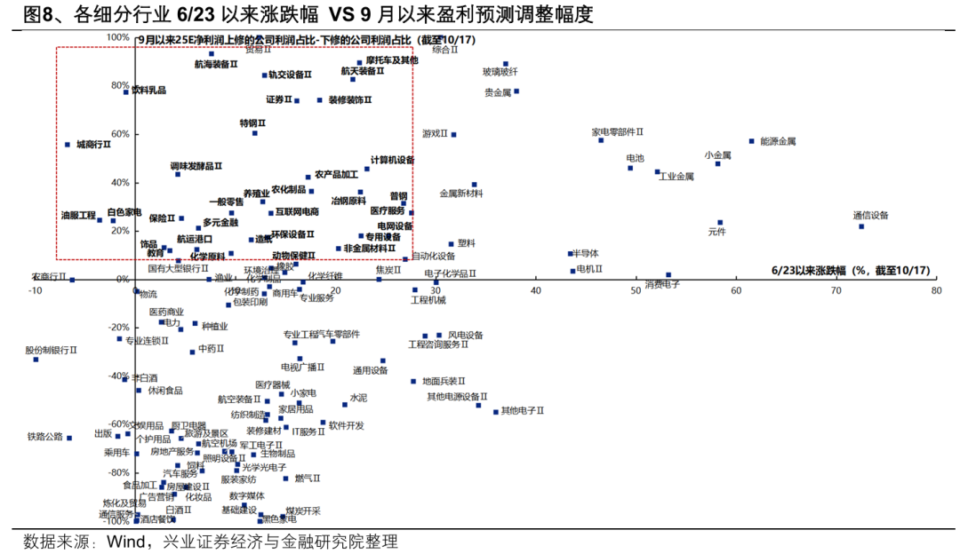 通过9月以来盈利预期上修较多的行业筛选三季报景气线索,主要集中在: