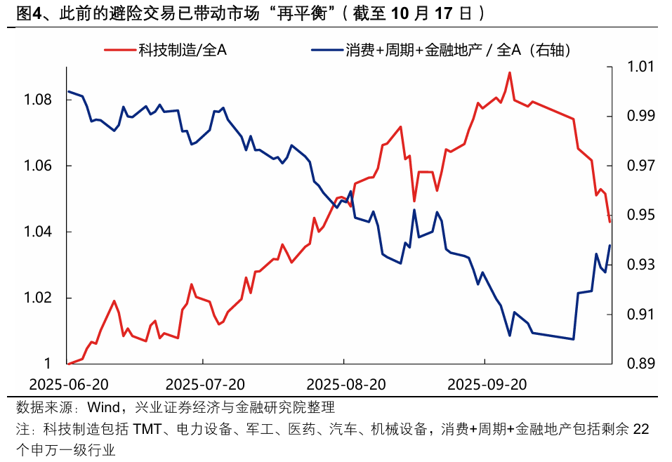 因此,海外扰动影响最大的时刻或正在过去,后续美联储议息会议、APEC峰会也将提供顺风环境。而国内也即将进入四中全会、三季报景气验证等积极因素密集催化的阶段,市场对于景气主线的共识也有望再一次凝聚。后续应对思路仍是以我为主,布局内部的确定性。